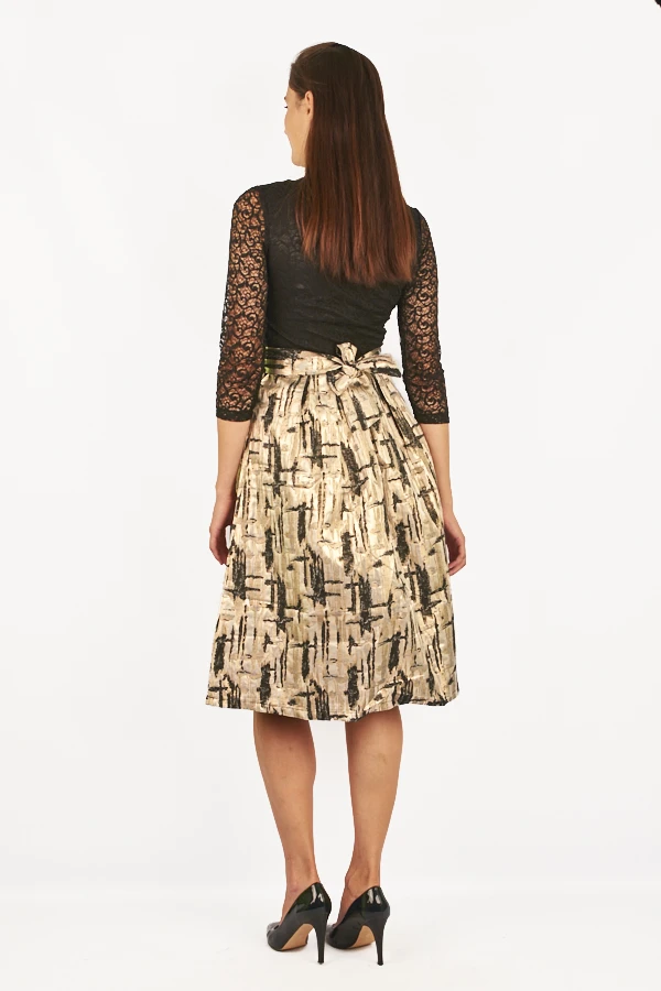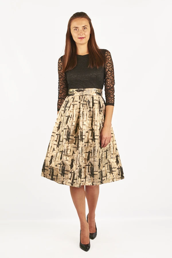 Красивое, вечернее платье комбинировано гипюром и материалом парча.