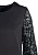 Платье прямого силуэта с втачным рукавом из гипюра. Платье выполнено из плательного материала. Манжеты рукавов оформлены стразами в цвет платья. В верней части переда нагрудные вытачки, по бокам карманы. Длина изделия 105 см.