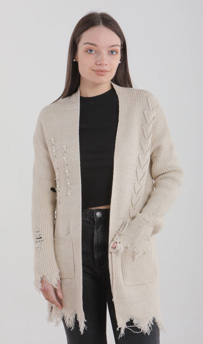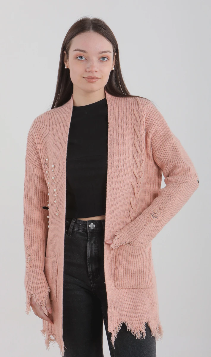Однотонный свободного кроя удлинённый кардиган, украшенный бусинами жемчуга. Модель сочетает в себе удобство и стиль, к нему можно легко подобрать обувь любого типа. Какая бы ни была погода за окном, в этом кардигане Вы будете чувствовать себя комфортно и уютно. Большой выбор оттенков позволяет выбрать тот, что идеально подойдет под гардероб каждой модницы. Вязаный кардиган станет Вашим новым и отличным выбором в этом сезоне, о котором Вы ни разу не пожалеете!