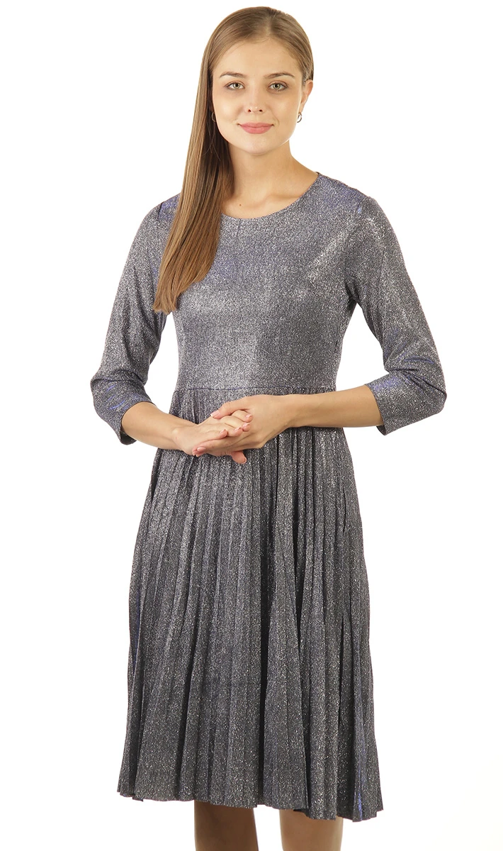 Платье отрезное по линии талии, с юбкой плиссе. Горловина круглая, застежка боковая потайная молния. Рукав втачной, длиной ¾.
