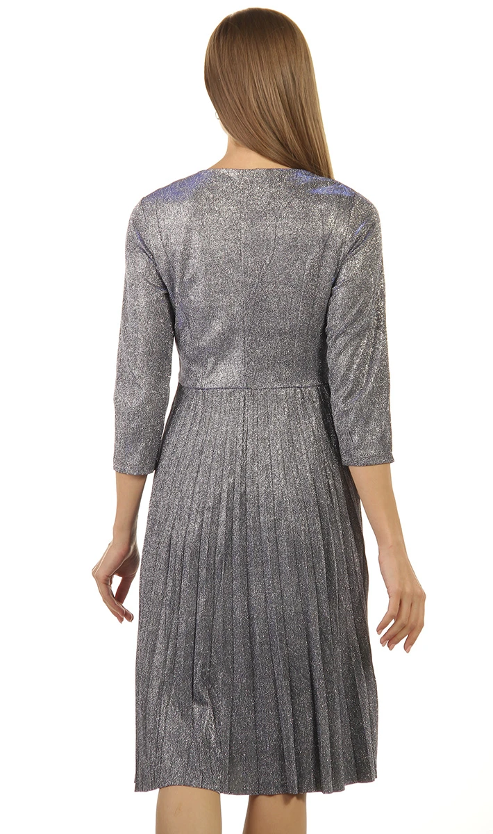 Нарядное платье двойка А-силуэта, выполнено из блестящей ткани на трикотажной основе без подкладки.
