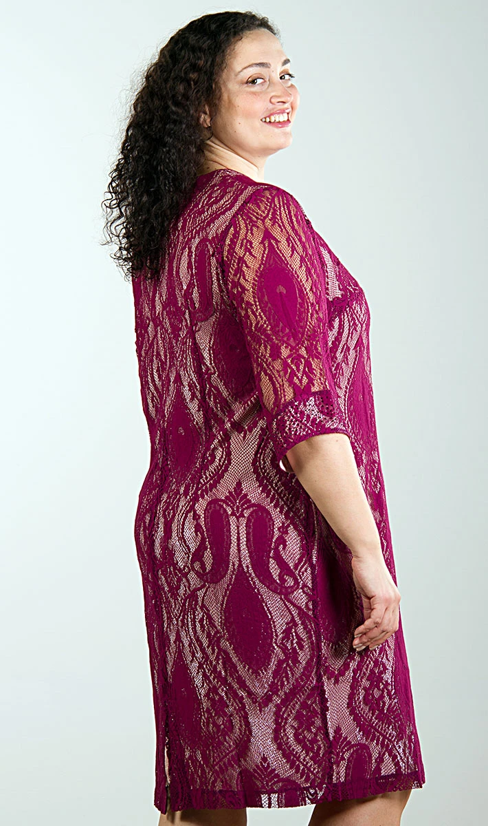 Элегантное платье позволит разнообразить офисный дресс-код или создать стильный и женственный образ для вечернего выхода в ресторан или театр. Элегантное кружевное женское платье для любого случая жизни - этот нарядное платье с плавным переходом цвета украсит вас, выгодно подаст силуэт и привнесёт нотку изящества и шарма во внешний вид. Идеальное вечернее платье на выход и для праздника - вы будете королевой любой коктейльной вечеринки! Изящное вечернее платье из гипюра поможет Вам в создании утончённого праздничного образа! Платье женское на подкладке, с небольшим количеством люрекса, что придаёт нарядность. Длина платья чуть ниже колена. Горловина округлая. Рукава втачные, длиной ¾, низ декорирован стразами в цвет платья. Спинка со средним швом, в котором расположена потайная молния, снизу разрез-шлица. На спинке имеются талевые вытачки.