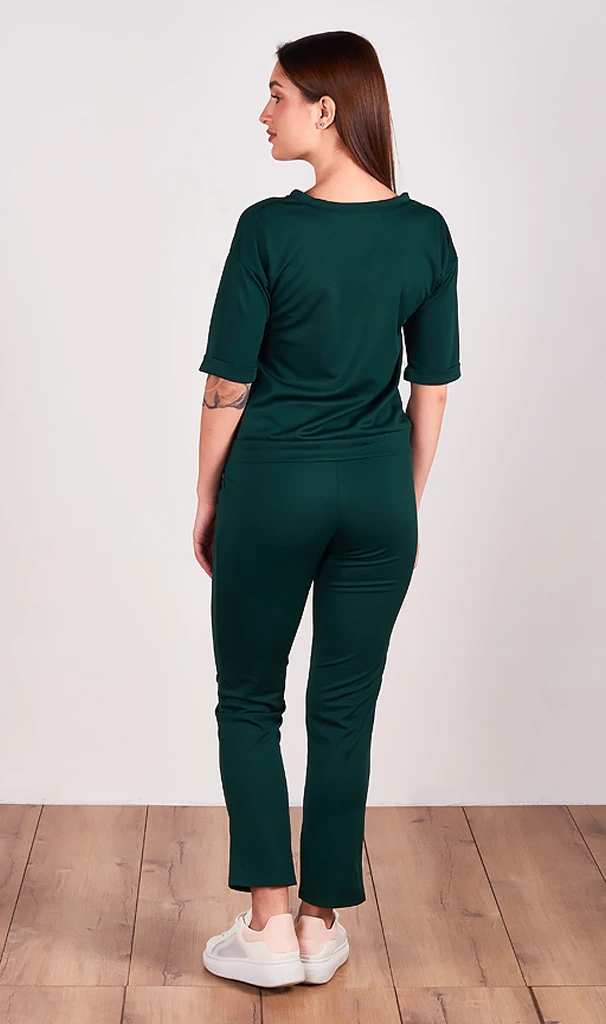 Брюки на резинке прямого силуэта, слегка зауженные к низу, с карманами. Костюм выполнен из эластичного, дышащего материала. Домашняя, спортивная, школьная форма подходит для повседневной носки. Классические однотонные без принта цвета станут стильной базой создания модных красивых луков для дома отдыха и прогулок на весну, лето и осень.