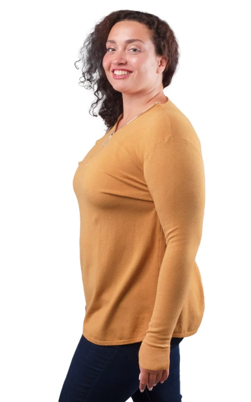 Красивый и тёплый кашемировый джемпер полуприталенного силуэта. Рукав длинный на вязаной манжете. Молния функциональна, можно изменить размер выреза. Низ закруглённый. Длина изделия по спинке 71см.