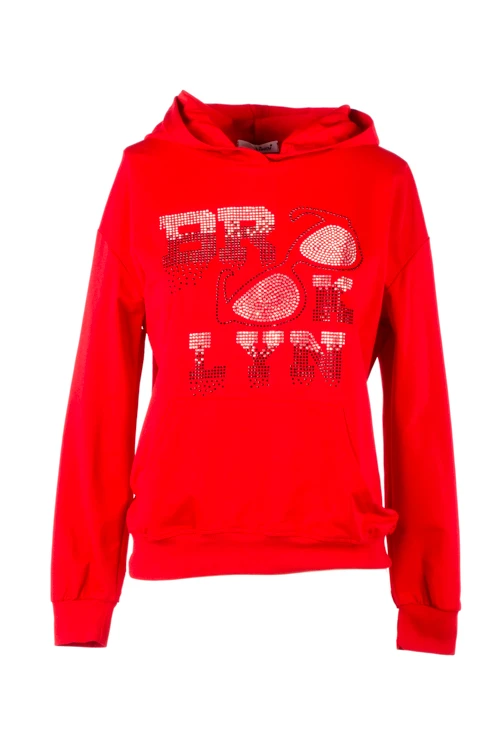 Стильная толстовка с капюшоном из натурального хлопка - находка для активной девушки. Без застёжки. На груди выполнен логотип из страз. Манжеты и низ изделия на резинке.