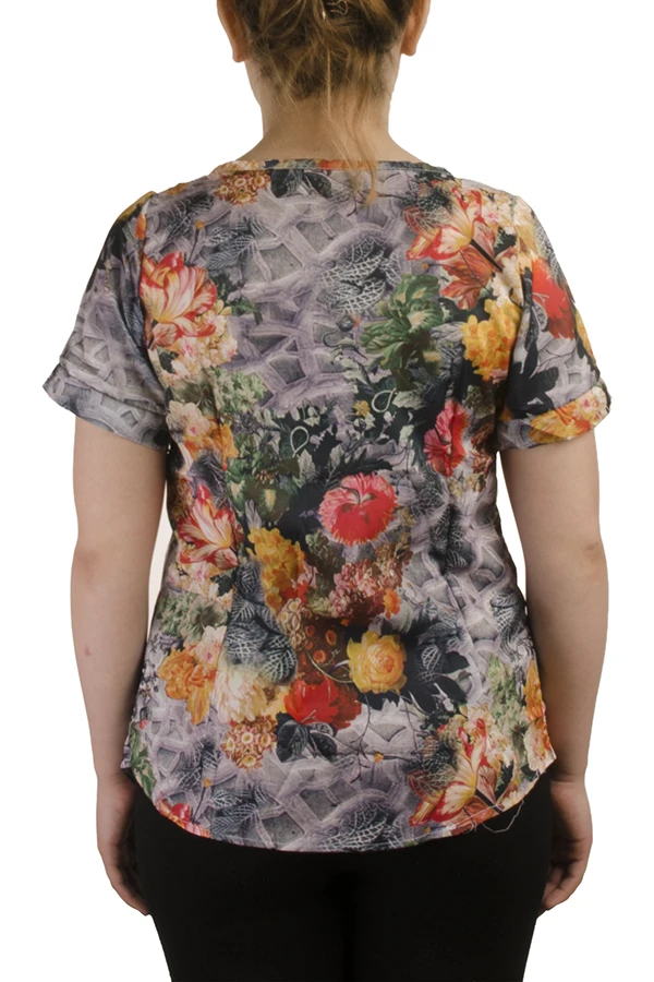 Футболка для повседневной носки в яркую расцветку. Округлый вырез дублируется по низу изделия. Благодаря невесомому материалу, вы не будете ощущать её на себе!