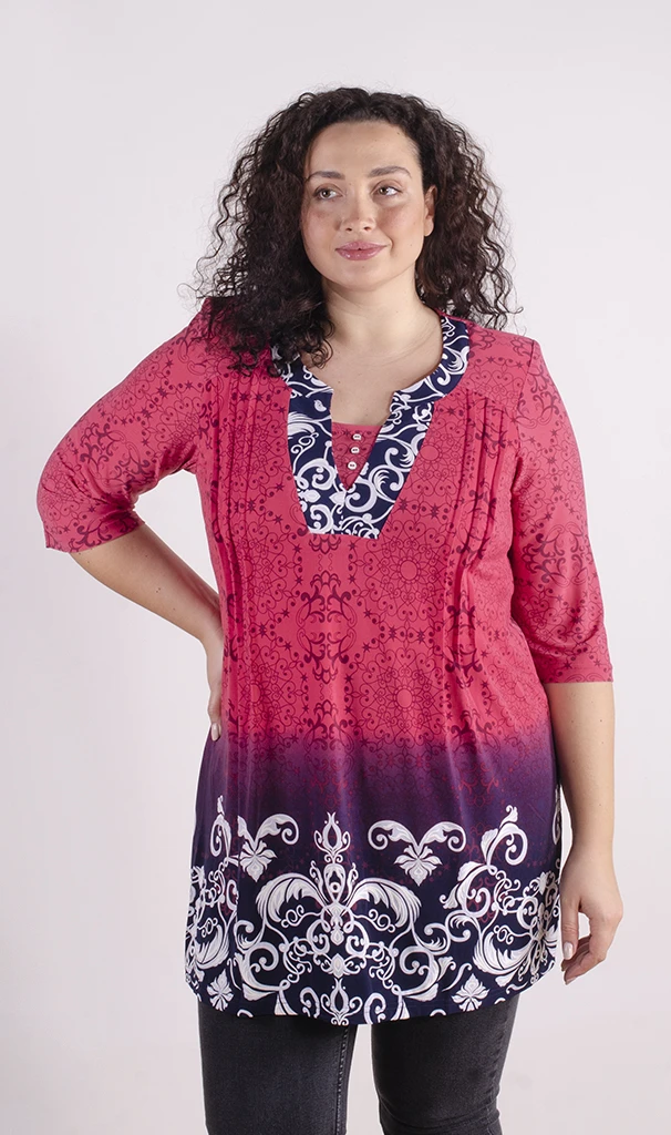 Женская блузка удлиненная с узором 248349 размер 54, 56, 58, 60, 62, 64