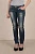 Темно-синие джинсы с белыми вкраплениями, прямого фасона, со средней талией. Потертости на коленях и крупные и мелкие стразы, позволяют дополнять разные образы.