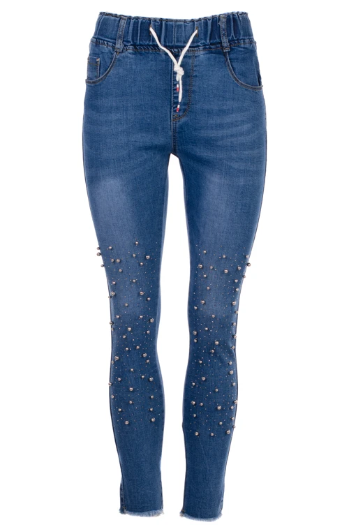 Красивые и стильные джинсы с бусинами. Материал стрейч. Модель маломерная.