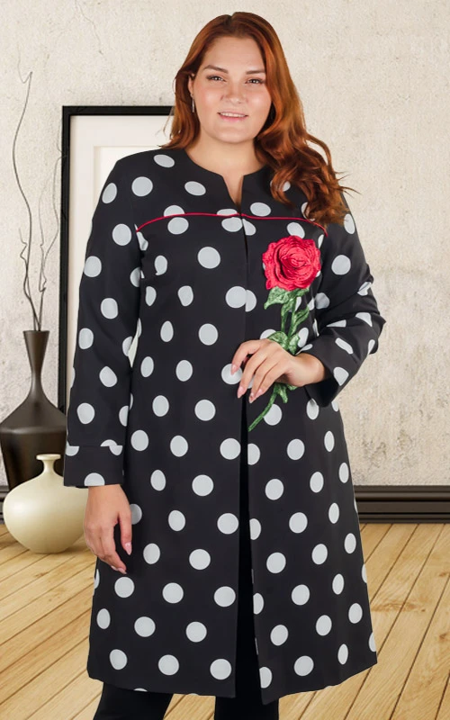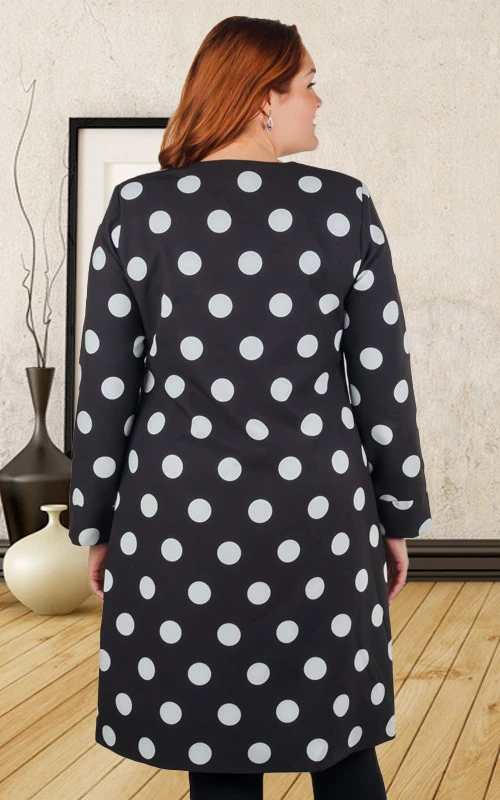 Нарядный кардиган, полуприлегающего в области талии силуэта и расширенного к низу. Выполнен из плательной ткани с рисунком в горох. Кардиган с подкладом, застежка-пришивные крючки.