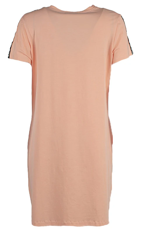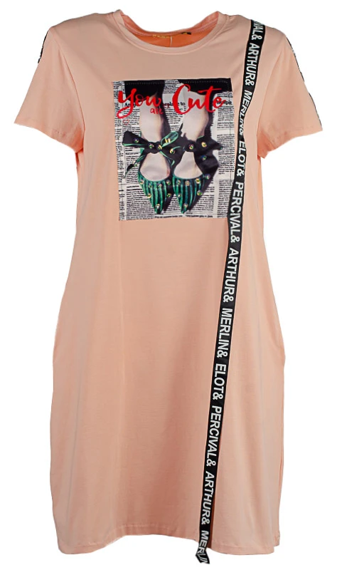 Платье из трикотажного полотна, крой трапеция. По бокам имеются карманы, принт пришитый.