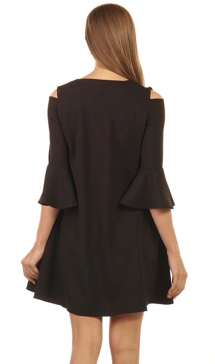 Романтичное платье мини станет прекрасным дополнением Вашего гардероба. Ярким акцентом лаконичного фасона являются женственные рукава формы волан с вырезом на плечиках.