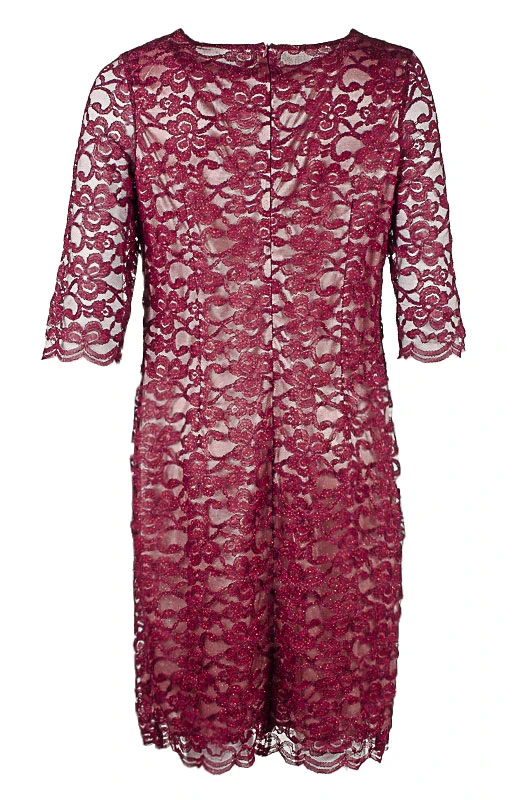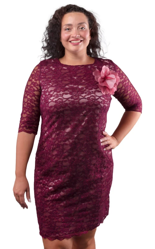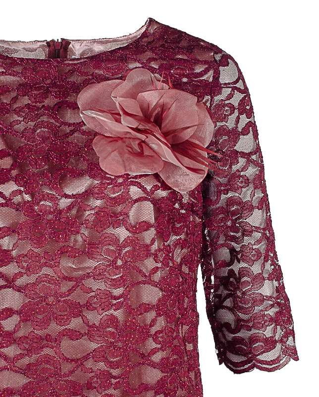 МОДЕЛЬ МАЛОМЕРИТ НА РАЗМЕР. Изящное вечернее платье из гипюра поможет Вам в создании утончённого праздничного образа! Платье женское на подкладке. В ткани платья присутствует совсем небольшое количество нитей люрекса, что придаёт нарядность. Длина платья чуть ниже колена. Горловина округлая. Рукава втачные, длиной ¾. Спинка со средним швом, в котором расположена потайная молния. На спинке имеются талевые вытачки. Вечернее платье дополнено съёмной брошью.