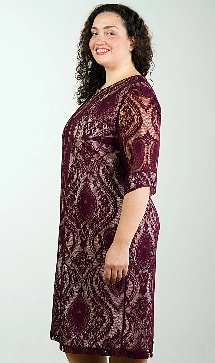 Элегантное платье позволит разнообразить офисный дресс-код или создать стильный и женственный образ для вечернего выхода в ресторан или театр. Элегантное кружевное женское платье для любого случая жизни - этот нарядное платье с плавным переходом цвета украсит вас, выгодно подаст силуэт и привнесёт нотку изящества и шарма во внешний вид. Идеальное вечернее платье на выход и для праздника - вы будете королевой любой коктейльной вечеринки! Изящное вечернее платье из гипюра поможет Вам в создании утончённого праздничного образа! Платье женское на подкладке, с небольшим количеством люрекса, что придаёт нарядность. Длина платья чуть ниже колена. Горловина округлая. Рукава втачные, длиной ¾, низ декорирован стразами в цвет платья. Спинка со средним швом, в котором расположена потайная молния, снизу разрез-шлица. На спинке имеются талевые вытачки.