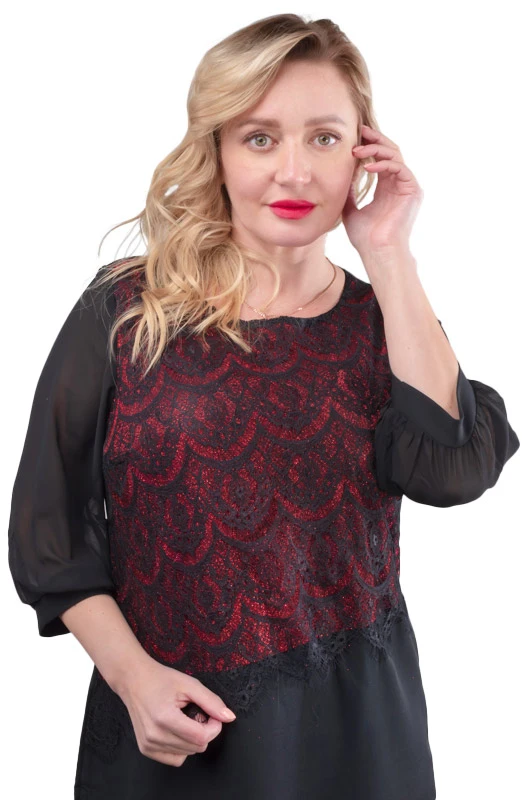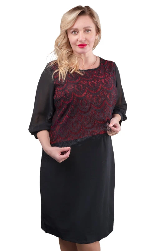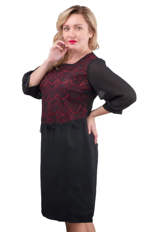 Красивое вечернее платье полуприталенного силуэта из плательного материала. Верхняя передняя часть платья выполнена из ткани с блёстками. В этом платье деталь, покрытая кружевным полотном, как бы скрывает недостатки, но в тоже время является украшением. Горловина округлой формы. Рукава шифоновые, длиной ¾. Застёжка потайная молния в боковом шве. Спинка цельная, с талиевыми выточками. Платье подойдёт для высоких девушек и для среднего роста. Это платье станет Вашим любимым для вечеринок, праздничного вечера!