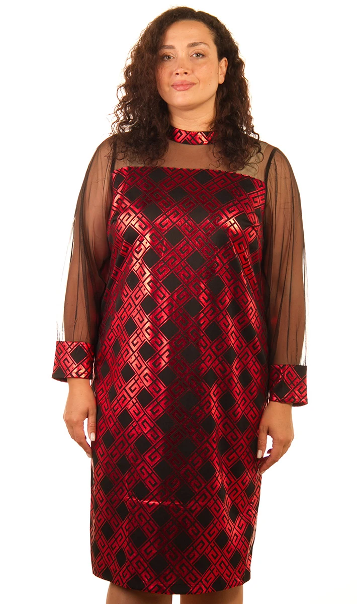 Платье женское с фатиновым рукавом 252025, размер 50, 52,54,56