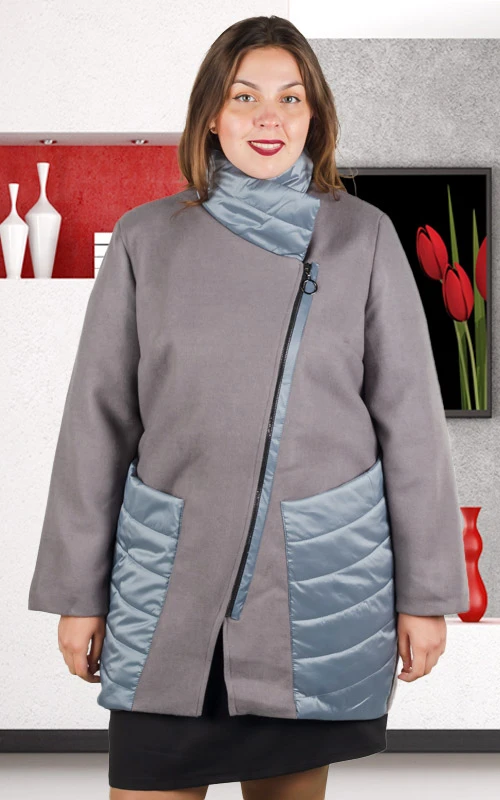 Пальто с подкладом, без утепления. Параметры размеров: Размер 48 ОГ=100 ОТ=102 ОБ=108 Длина по спинке=78 Размер 50 ОГ=102 ОТ=104 ОБ=110 Длина по спинке=81 Размер 52 ОГ=106 ОТ=108 ОБ=112 Длина по спинке=83