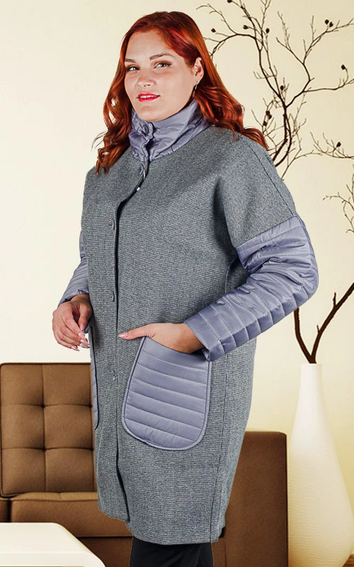 Пальто с подкладом, без утеплителя. Рукава на тонком синтепоне. Длина: 110 см. Из-за ручного измерения возможна небольшая погрешность в 1-2 см! Обхват груди (в размере 46/50/52): 104/106/108 см Обхват бедер: 110/112/116 см